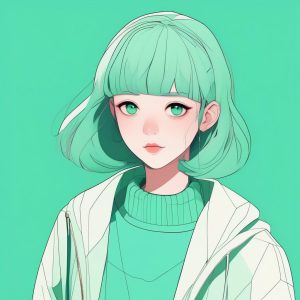 AI art prompt English – Minimalist Anime Girl: Pouting Expression and Flat Color
