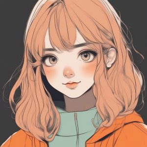Anime Minimalist style Girl Portrait, Cel-shading, Thick black lineart, Thick black lineart, Solid color fill, Macaron pastel color palette, Low saturation. Simple subject, headshot of a girl, hair simplified as if slightly wind-blown, slight frown or confused expression. Clean background, Solid color soft beige background, Simple.