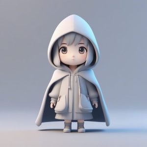 专注于森林逃亡主题的Q版公主设计。全身站立,躲在一个巨大的蘑菇后,采用Octane渲染的粘土质感,营造出可爱的躲藏场景。