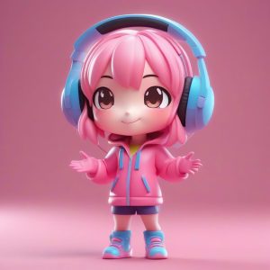 AI art prompt English – Gaming Headset Chibi 3D Render Prompt (Neon Pink)