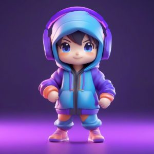 AI绘画提示词中文 – 电竞耳机Q版角色:C4D高抛光全身站姿渲染图