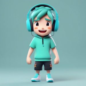 AI绘画提示词中文 – 电竞风潮:鲜红色卫衣Q版男孩与游戏耳机,高清晰度C4D渲染