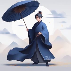AI art prompt English – Cinematic Lighting: Lilac Hanfu Chibi Girl with Goldfish Lantern