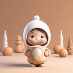 AI art prompt(English) – Chibi Eating Ice Cream in Winter Full Body Clay prompt