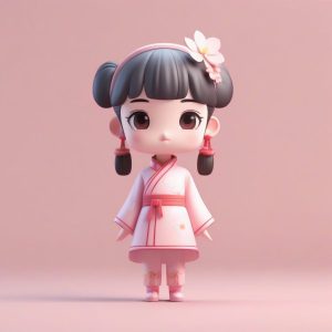 捕捉温暖治愈的Q版卫衣男孩形象。使用蓬松的米色卫衣材质,体现害羞的表情和抱着热巧克力的可爱动作,背景为纯淡桃色。