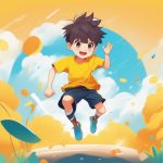 AI绘画提示词(中文) – 动漫极简风格:厚描边与纯色背景的完美结合——头戴云朵帽的女孩