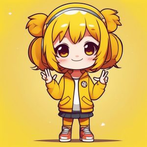 AI art prompt English – Anime Icon Style: Winking Girl Close-up with Bold Outline on Saturated Solid Purple