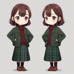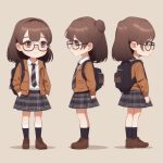 AI art prompt(English) – Dark Academia Chibi: Plaid Skirt Winter Layering Prompt