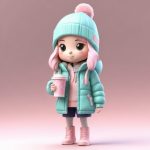AI art prompt(English) – Icy Blue Scarf Chibi Figure Pop Mart Style Avatar Prompt