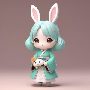 AI art prompt English – Dynamic Cute Chibi Deer Girl Jumping Prompt with Solid Background