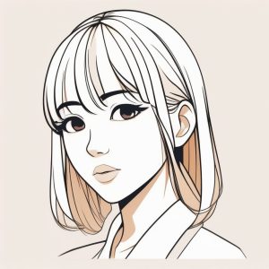 A minimalist anime girl portrait, simple straight hair, small soft smile, created on a solid sage green background. Flat colors, crisp outlines, no additional details, focus on character quietness and simple beauty.
