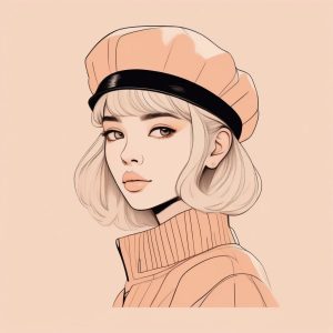 二次元极简风格女孩肖像——粉色长发少女侧脸