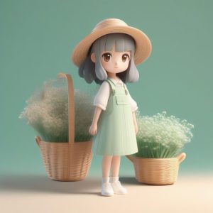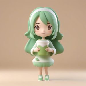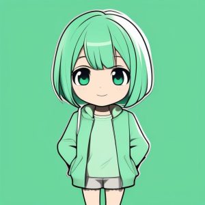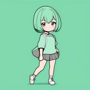 二次元极简风女孩,薄荷绿背景,侧脸俯视