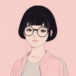 Anime Minimalist Girl Portrait: Cute Pink-haired Girl