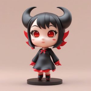 校服主题的Q版角色是市场上热门的盲盒题材之一。生成高质量的关键在于材质的真实感和布光的专业性。我们强调“高抛光”和“粘土材质”,模拟专业手办的光滑触感。全身站立的姿势,结合柔和的工作室布光,完美地捕捉了校服裙摆和领结的细节。这组提示词非常适合需要批量生成Q版角色原型的创作者。