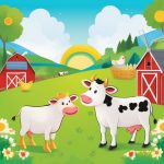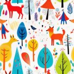 Cute children’s storybook art featuring a group of adorable animals, soft pastel colors, round stylized shapes, smiling fox, sleepy bear, cheerful bunny, vibrant forest background, playful clouds and flowers, gentle storytelling mood, warm and comforting illustration