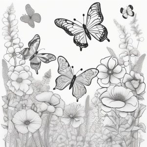 A majestic cat surrounded by blooming flowers, intricate zentangle art prints, highly detailed patterns, black and white, decorative background, harmonious composition