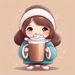 A warm colors illustration depicting a Japanese girl wearing overalls. The image features a minimalist line art style, with colors focused on pastel colors of pink and blue. This Hand drawn piece uses crayon style and colored pencil strokes, rendered on textured paper, featuring soft edges, and having a whimsical storybook style.