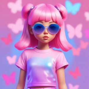AI绘画提示词(中文) – 粉蓝甜酷系:Y2K蝴蝶结配饰与极简线稿的融合技巧