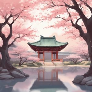 A landscape illustration of a cherry blossom-lined street. Rendered in a hand drawn style with delicate colored pencil texture, predominantly featuring dreamy pink pastel colors. It has distinct soft edges and subtle paper texture, creating a sweet, storybook spring atmosphere.