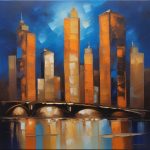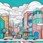 复古时尚动漫漫画风格描绘的未来城市黄昏景观,高耸的霓虹建筑带有发光窗户,身穿赛博朋克服装的动漫少女在漂浮走廊上,天空中抽象的图案,充满活力的紫色和青色配色,繁忙的人群,复古半色调效果,动态俯视视角,光滑的数字画面