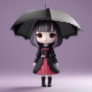 AI绘画提示词(中文) – 复古哥特萝莉Q版:撑着蕾丝阳伞的优雅站姿(Gothic Lolita)