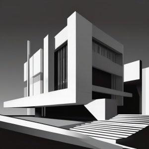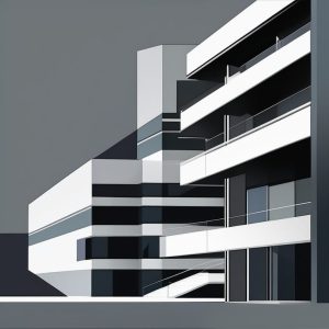 A brutalist Bauhaus architecture poster illustration of a tall clock tower, depicted with strong geometric forms, clean edges, and a light beige solid background. The design is extremely minimalist, using only blocks of neutral color, with no windows or decorative details. The tower stands alone, bold and abstract.