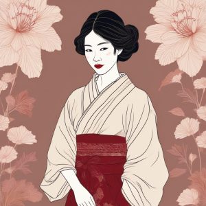 A thoughtful Japanese girl avatar in a minimalist line art illustration style, looking down. The artistic style is a warm-toned illustration, detailing with colored pencil, emphasizing vintage textured paper and soft edges. The colors utilize warm colors, conveying a whimsical storybook style texture. Solid cream white background.