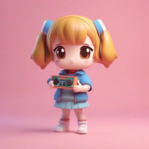 A minimalist Japanese girl’s head portrait, utilizing soft rounded lines and a simple doodle style, integrated with subtle retro 8bit pixel art aesthetic. The image features minimal details, conveying an innocent playful expression. It uses a highly saturated pastel color palette of pink and gentle shades of baby blue. The background is a solid light grey, projecting a lighthearted and charming retro aesthetic.
