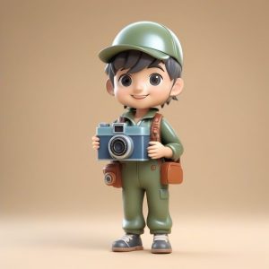 AI art prompt English – Chibi Retro Camera Boy Matte PVC Toy