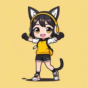 AI art prompt English – Bold Cartoon Chibi Girl Peace Sign High Saturation Prompt
