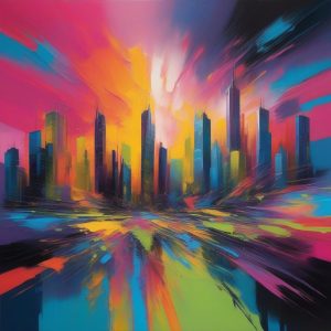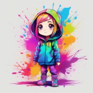AI art prompt English – High Contrast Chibi Portrait: Lime Green and Orange Abstract Art