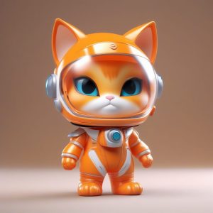 AI绘画提示词中文 – 高光泽3D渲染:自信运动服虎耳娘Q版站姿模型