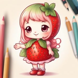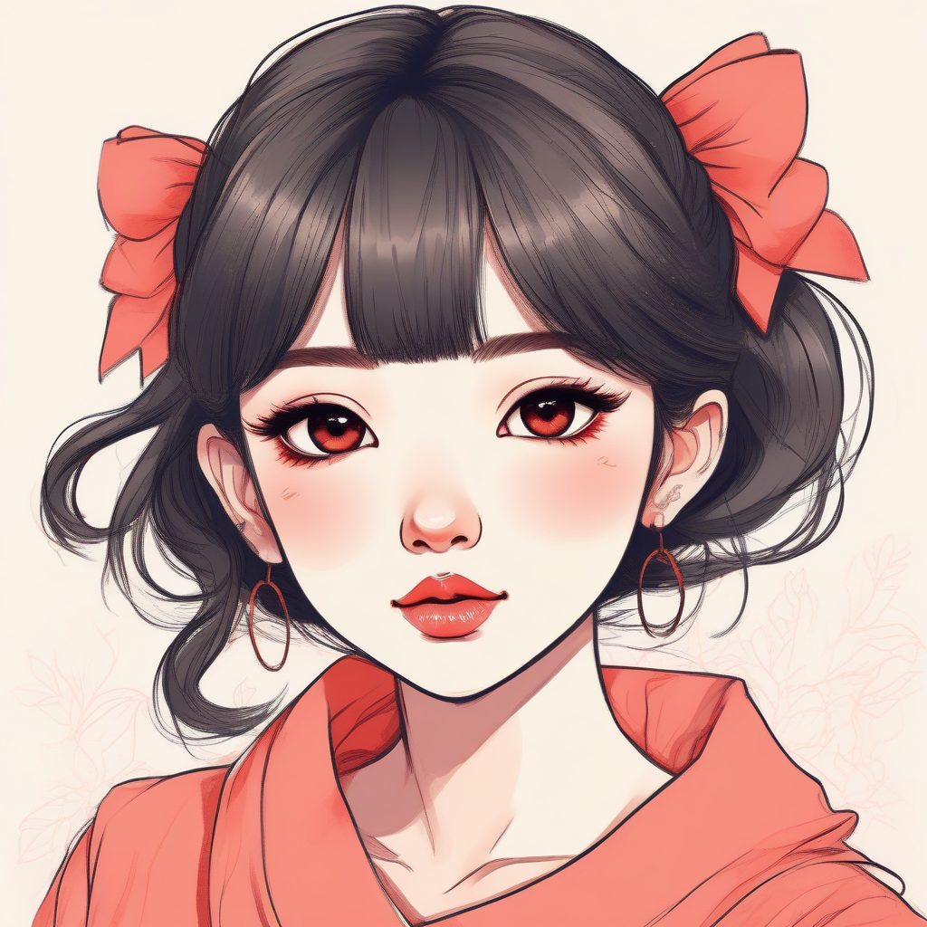 🍓高清细节控必看!如何让AI生成的手绘线稿插画,拥有肉眼可见的纸张纹理和彩色铅笔痕迹。🌸纯色背景突出少女精致的日系妆容和眼神细节。✨