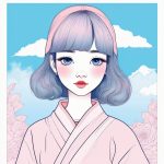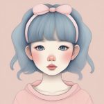 AI绘画提示词(中文) – 高人气配色:粉蓝撞色极简线稿,打造元气少女氛围感