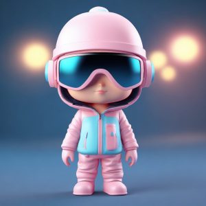 一个兴奋的Q版洛丽塔女孩,全身站立姿势,穿着潮流的冬日羽绒服时尚和厚实的靴子。高细节8k渲染,捕捉她俏皮的表情。使用C4D、Octane渲染和光线追踪生成,重点突出可爱的盲盒收藏品风格。纹理是光滑的粘土材质,沐浴在柔和的工作室光照和柔和色彩中。背景:没有纹理,干净、简单、纯色,完全空旷,没有图案。