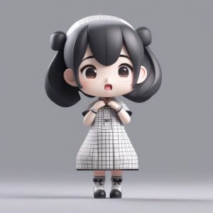 AI绘画提示词中文 – 格子纹旗袍Q版:严肃可爱敬礼姿势C4D手办