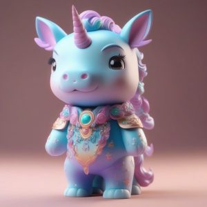 Cute chibi girl, full body, standing, dressed in a detailed blue and white porcelain patterned China dress. Clay material texture, pastel colors palette. 3D render, Octane render, C4D. Perfect ray tracing effects. Blind box collectible figure, Pop Mart style. Soft studio lighting, high detail, 8k. Isolated on a clean gradient background. No textures.