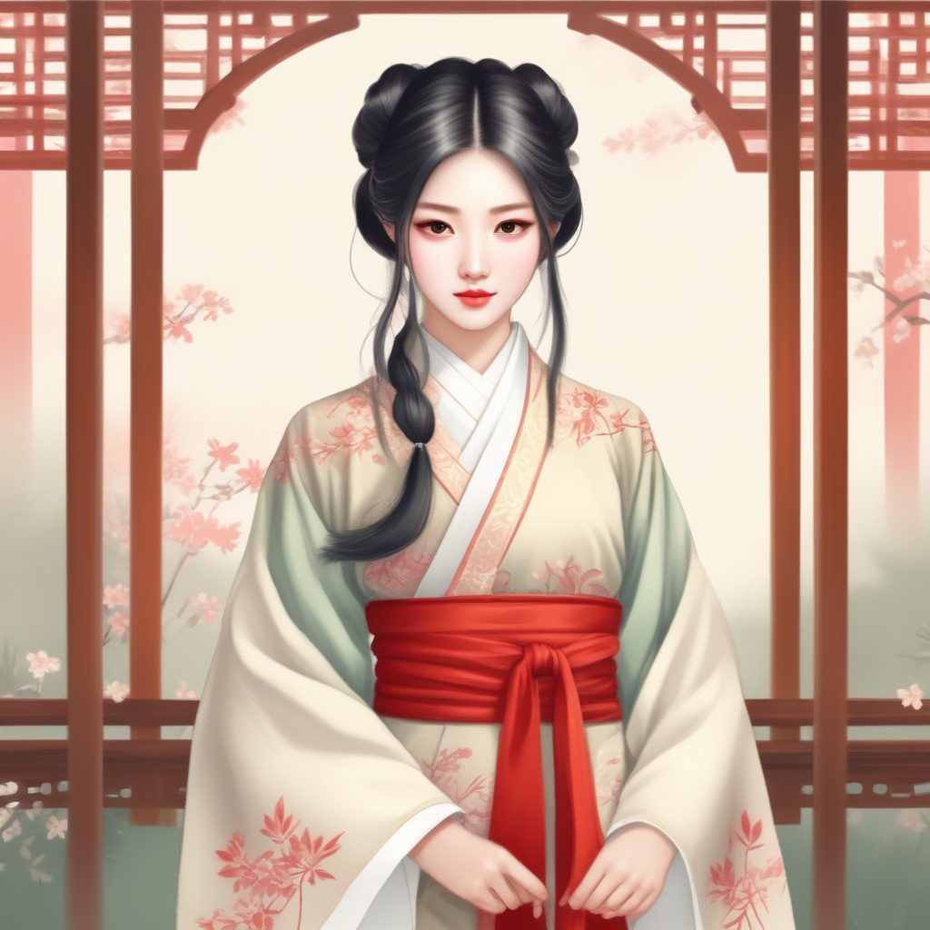 A half-body portrait of a girl in traditional Hanfu. A beautiful Chinese style hand drawn illustration with gentle temperament. Rendered with fine colored pencil and light crayon style texture, emphasizing soft pastel colors and warm colors. Fine textured paper background, soft edges, embodying a storybook style elegance.