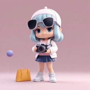 AI art prompt(English) – Beach Vacation Chibi Figure: Dynamic running pose and ‘Sun Yay’ excited expression AI painting