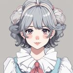 一个二次元极简少女的特写头像,她穿着一件带有海蓝色元素的极简衬衫。Anime minimalist style girl portrait, solo focus。使用Thick bold outlines,flat color filling和cel shading。色彩为low saturation, desaturated的Macaron color palette,以海蓝色和白色为主。Background: 干净、空无一物的solid color,浅灰色。