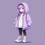 kawaii chibi style, single minimalism anime character, big head, small body, Cute, standing, Full body photo. simple clean solid color Background, flat color, completely empty, no patterns, No textures. solo, Cute and rich expressions, dynamic pose. A trendy chibi girl showcasing K-fashion layering, including a bright yellow beanie, a denim jacket over a hooded sweatshirt, and ripped jeans. She is standing with one hand casually in her pocket, reflecting a cool urban vibe. Ray tracing, pastel colors, soft studio lighting, high detail, 8K.