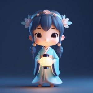 🌙Lotus Pond Chibi Girl, Fish Lantern Pastel Render – AI art prompt(English) :