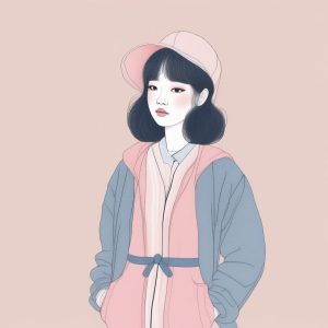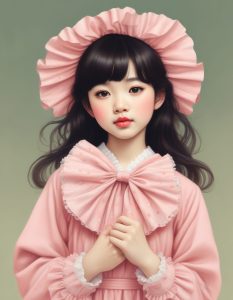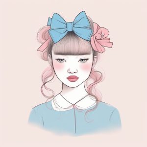 AI art prompt(English) – Ruffle Design: Sweet Princess Style Pink and Blue Minimalist Line Art