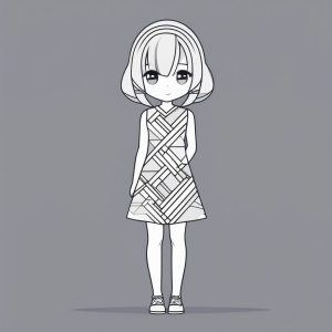 AI art prompt English – Geometric Black and White Chibi Girl Thoughtful Pose Vector
