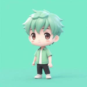AI art prompt English – Shy Uniform Girl Minimalist Portrait: Soft Wave on Solid Blue