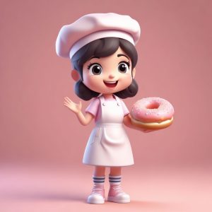 Baker Chibi | Dynamic Pose 3D Render Prompt for Foodies – AI art prompt(English) :