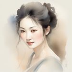 A romantic oil impasto portrait of a young woman, her features softly illuminated by golden ambient light, wearing a delicate floral dress. The brushstrokes are expressive and thick, highlighting her radiant skin and gentle smile. The luminous background features abstract swirls of pastel colors, suggesting a dreamy, ethereal atmosphere. Her hair is painted in flowing waves, catching hints of glowing highlights.