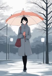 AI绘画提示词(中文) – 🌟 换头像神器!超可爱低饱和度极简线稿,冬日时尚少女全身图。