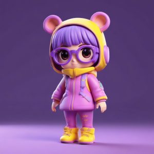 对于追求动感和亮眼色彩的用户,这个滑雪主题的提示词是首选。Q版猫耳娘身着色彩鲜艳、具有防水质感的专业滑雪服,头戴雪地护目镜。我们在描述中特别强调了“动态姿势”,以捕捉滑雪运动的活力。尽管服装细节复杂,但通过使用“高细节”和“光线追踪”,AI能够确保服饰的材质感和线条的干净利落,背景依然是纯色以保持焦点。